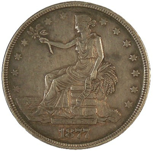 • U.S. Silver Trade Dollars dated between 1873 and 1878.