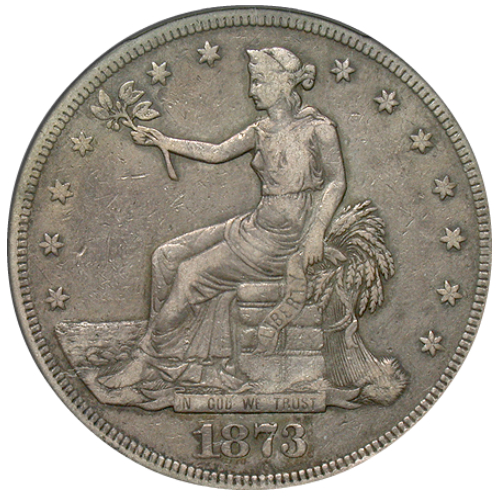 • U.S. Silver Trade Dollars dated between 1873 and 1878.