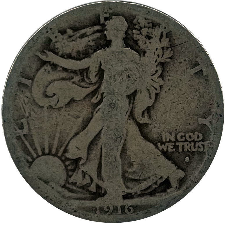 1916-S Walking Liberty Silver Half Dollar Coin - Good Condition
