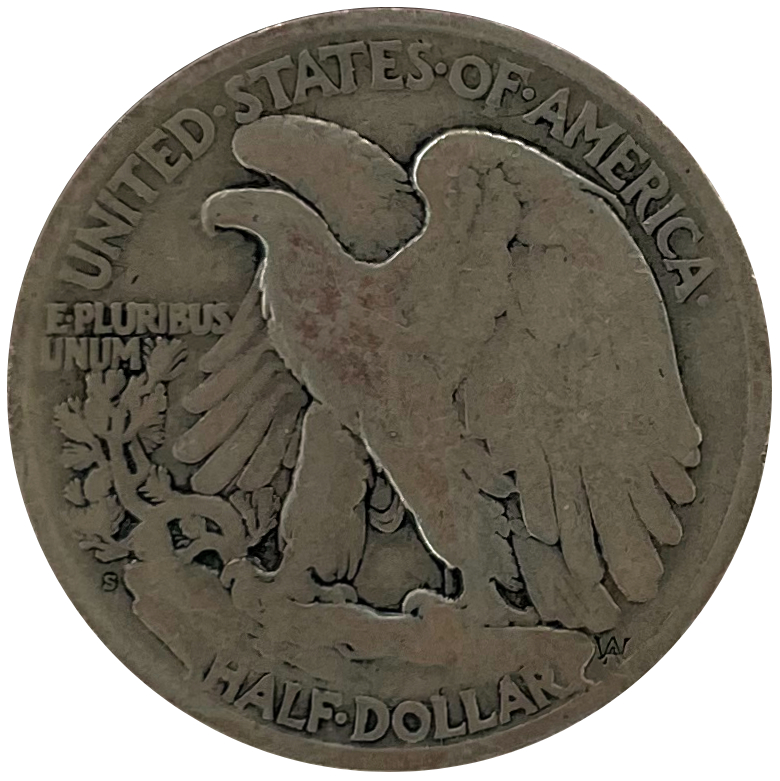 1921-S Walking Liberty Silver Half Dollar Coin - Very Good + Condition