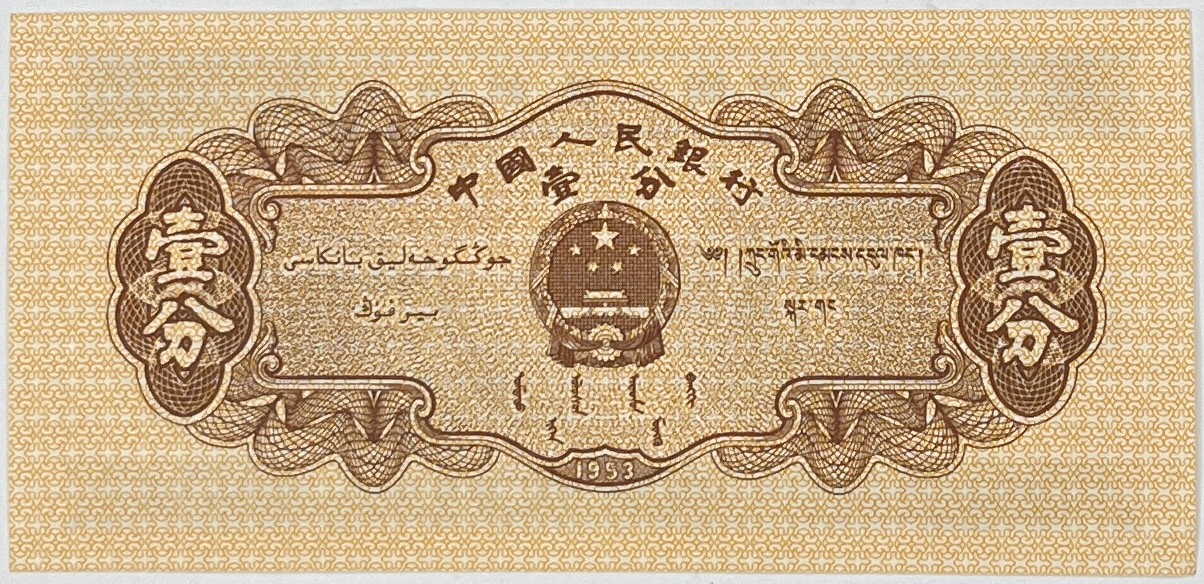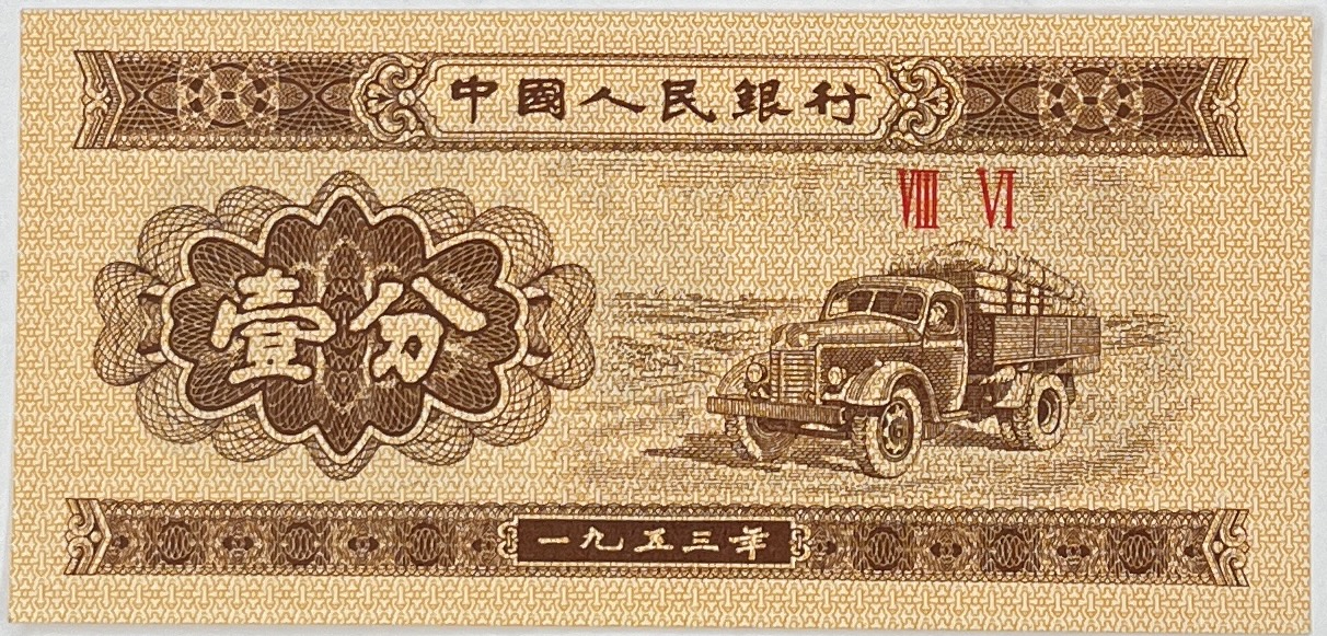 1953 People's Republic of China 1 Fen Banknote - Crisp Uncirculated 1953 People's Republic of China 1 Fen Banknote - Crisp Uncirculated
