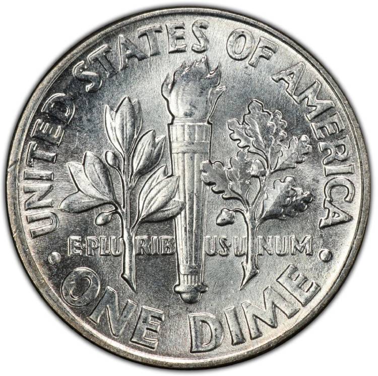 Roosevelt silver dimes were minted from 1946 to 1964 and were made in Philadelphia, Denver and San Francisco. The series was designed by John R. Sinnock and struck in 90% silver. There are circulation strikes starting in 1946 and proof examples were struck for collectors from 1950-1964. The mintmark is found on the reverse.