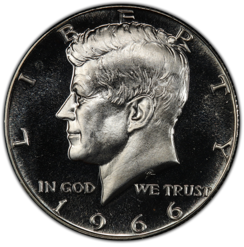 1966 SMS 40% Silver Kennedy Half Dollar Coin - Choice BU Cameo Contrast