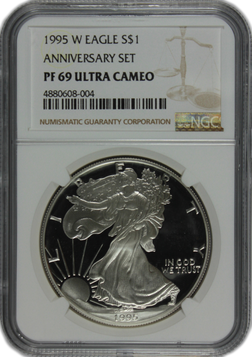 1995-W 10th Anniversary 1 oz American Proof Silver Eagle Coin - NGC PF-69 Ultra Cameo 1995-W 10th Anniversary 1 oz American Proof Silver Eagle Coin - NGC PF-69 Ultra Cameo