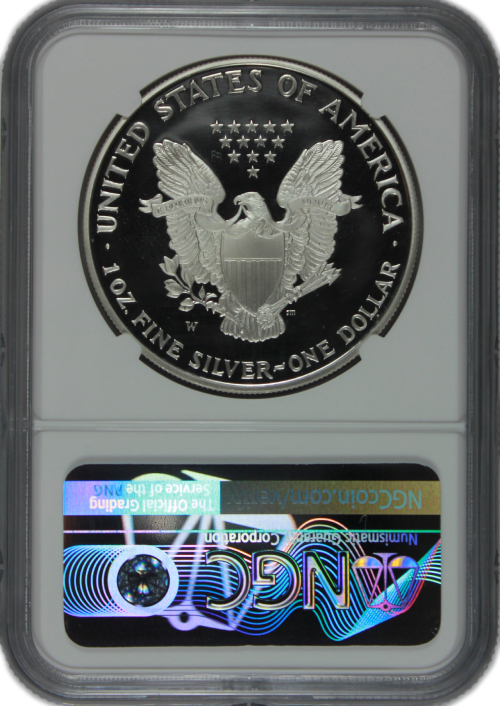 • Rare 1995-W Silver Eagle certified and encapsulated as being near perfect PF-69, by NGC - the Numismatic Guaranty Corporation, one of the leading third party grading companies.