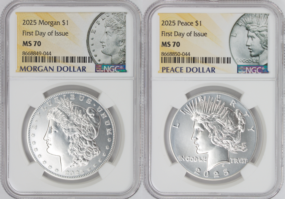 2025 Morgan and Peace Silver Dollar 2 Pc Set - NGC MS-70 First Day of Issue - Morgan and Peace Dollar Label